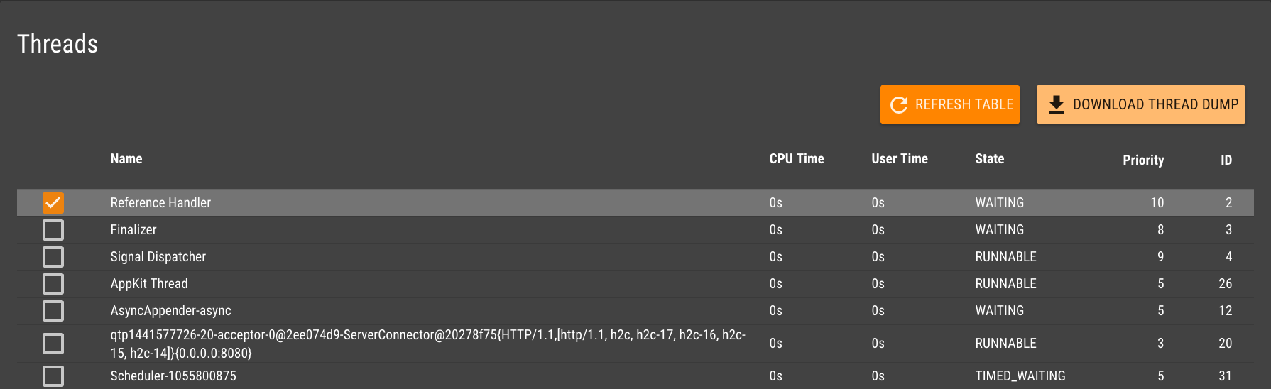 . The entire thread dump can be downloaded as a json file by clicking the Download Thread Dump